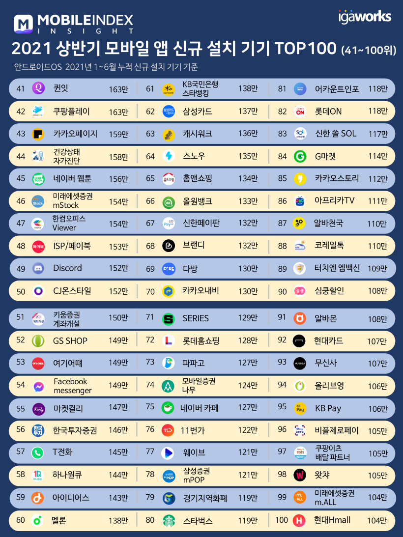 2. 2021 상반기 모바일 앱 신규 설치 기기 수 TOP 100