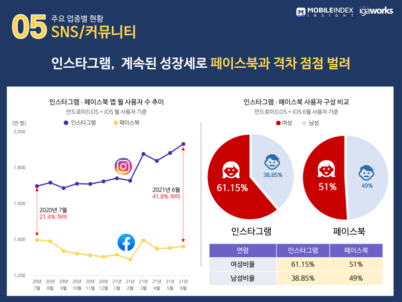 5) 인스타그램, 계속된 성장세로 페이스북과 격차 점점 벌려