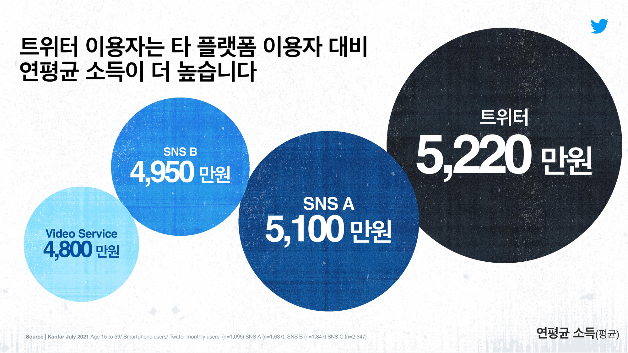 ▲사진 설명: 트위터 이용자의 연평균 소득은 5,220만 원으로 나타났다.