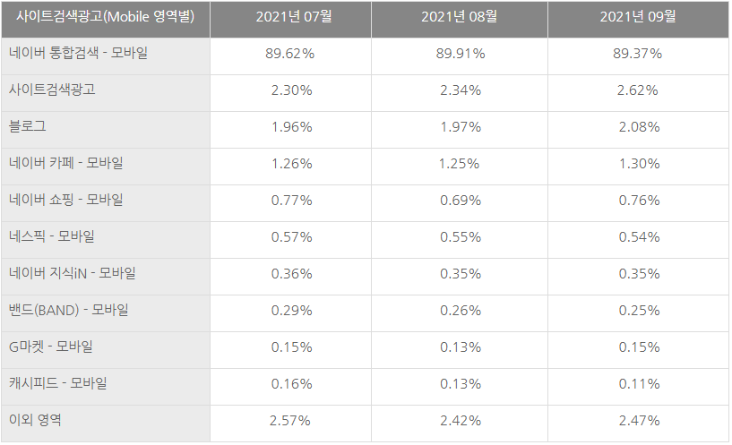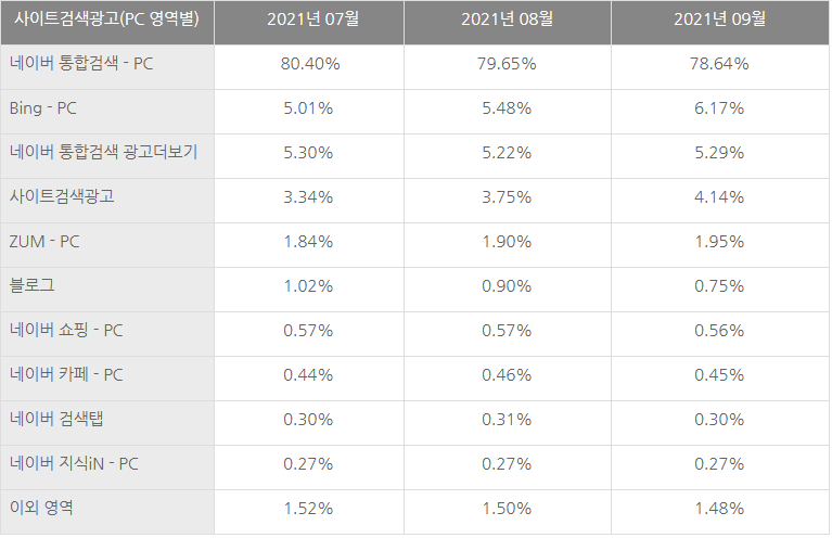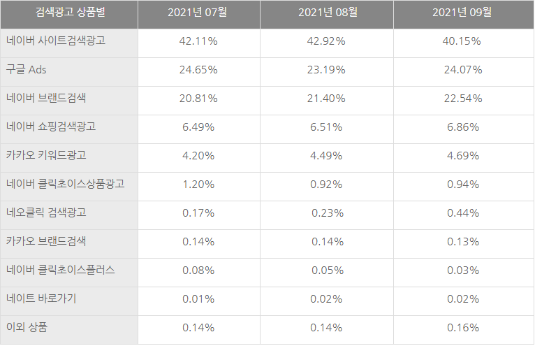 2021년 3분기 검색광고 상품별 유입률 분석