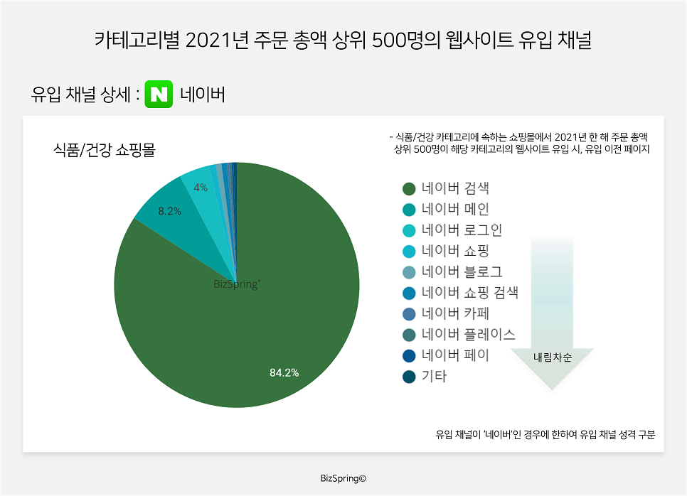 주요 유입 채널 중 가장 높은 비율을 차지했던 ‘네이버’ 한정,