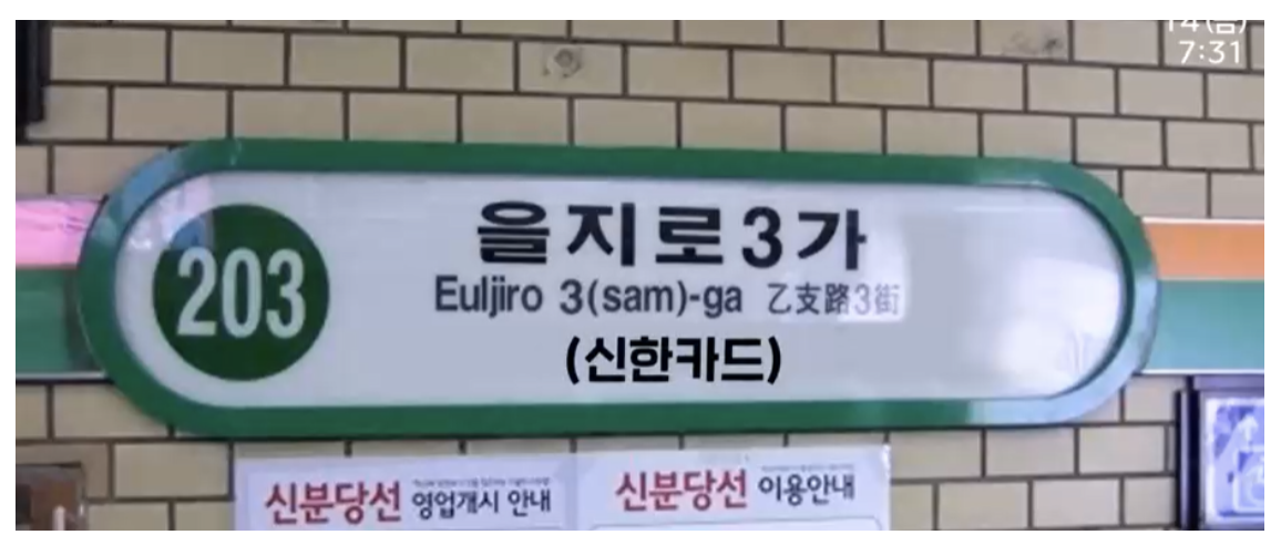 앞으로 을지로 3가역이 신한카드역으로 함께 불리게 됩니다.