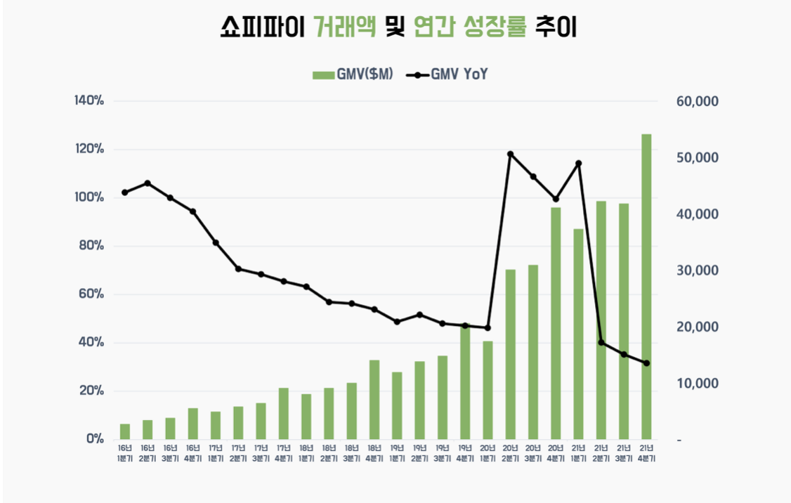 사실 투자 전망을 결정적으로 어둡게 만든 요인은 바로 성장 둔화였습니다. 성장 속도가 코로나 팬데믹의 영향 아래 있었던 작년, 재작년보다 강력하지 않을 거라는 메시지가 전해졌던 겁니다. 실제로 2020년부터 무섭게 성장하던 쇼피파이의 질주는 작년 2분기부터 급격하게 멈춰 선 모양새입니다.