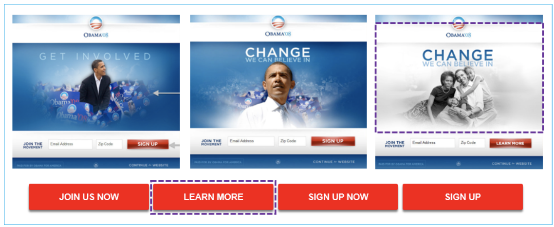 그렇다면 이렇게 들어온 유권자들의 행동을 보고 최적화를 하고 있을까요? 앞서 서두에서 소개해 드린 오바마 선거캠프는 기부를 늘리기 위해, 이미지와 카피, 버튼 등을 적극적으로 활용하여 성공을 거두었는데요. 이를 위해선 역시나 방문한 유권자의 행동 데이터 수집이 중요합니다.