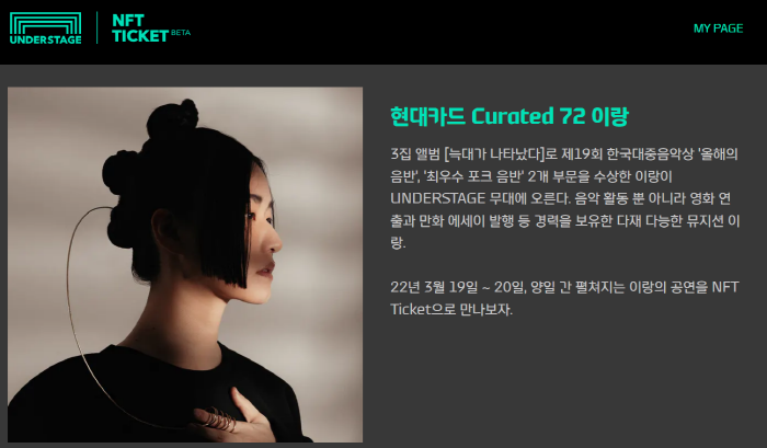 출처 현대카드 UNDERSTAGE NFT TICKET BETA