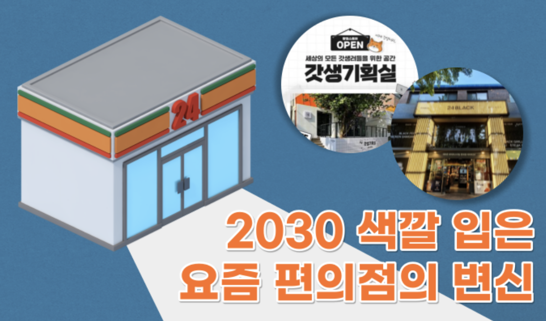 요즘 편의점이 달라지고 있어요. 2030의 손길이 직접 닿아 바뀌기도 하고, 2030의 색깔에 맞게 변하기도 합니다. 20·30세대 MZ 고객이 편의점의 주요 고객층인 만큼, 이들을 겨냥한 마케팅에 더욱 주력하고 있는 것인데요.