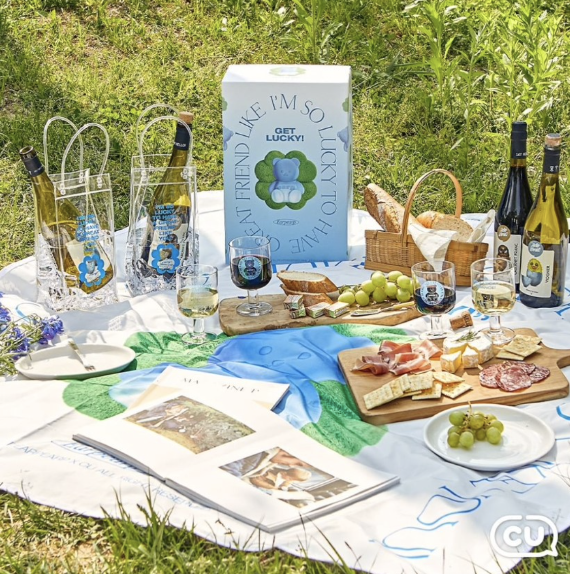 재즈 페스티벌 같은 야외 공연, 한강 나들이/캠핑 같은 야외 활동에서 돗자리, 와인잔이 포함된 피크닉 세트에 대해 수요가 높은 것을 예상하고, MZ세대에게 인기 있는 캐릭터 브랜드 중 '어프어프'와 협업하게 된 것입니다.