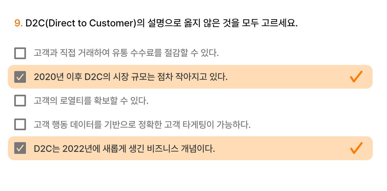 ⑤D2C는 2022년 이전에도 존재했던 비즈니스 방식으로 중간 유통과정 없이 자사몰을 통해 고객에게 직접 상품을 판매하는 방식을 의미한다.