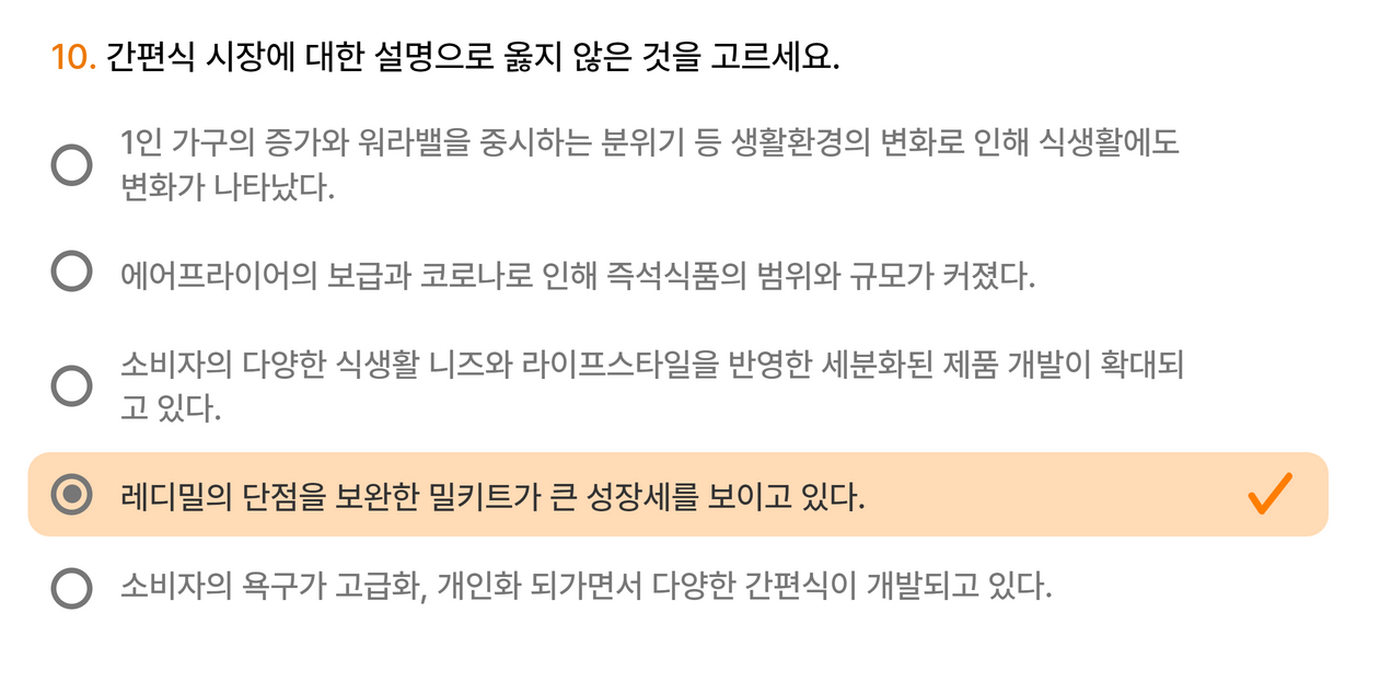 ④조리 시간이 길고 설거짓거리가 많이 나온다는 밀키트의 단점을 보완한 레디밀이 큰 성장세를 보이고 있다.