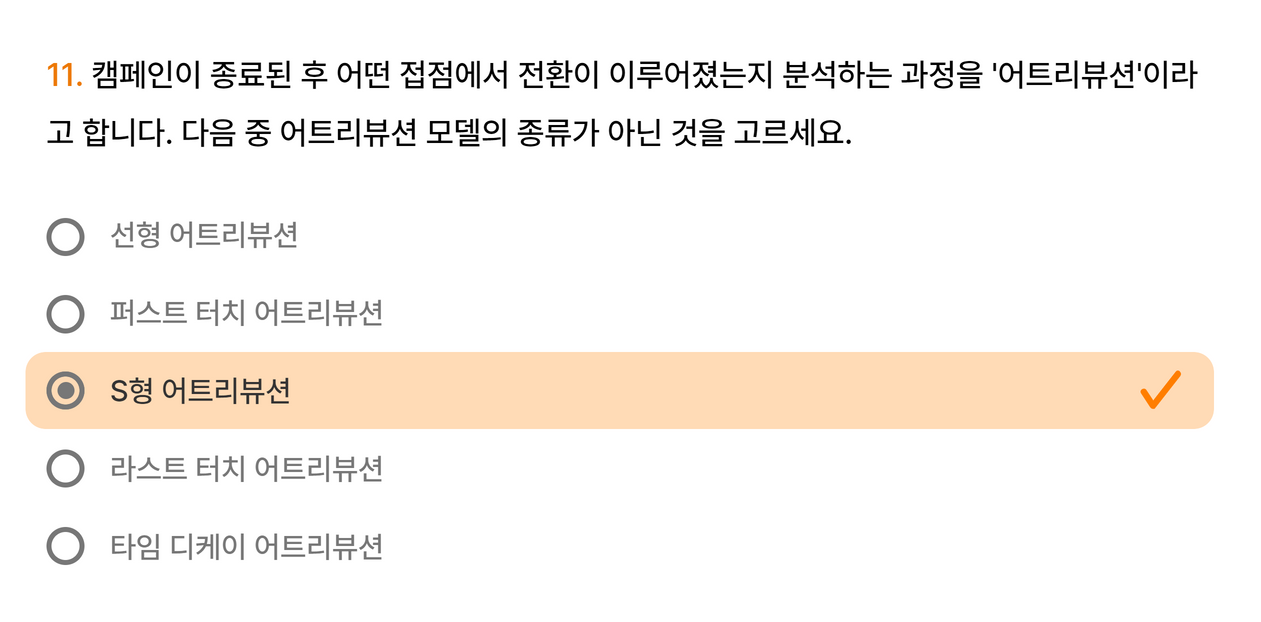 ①선형 어트리뷰션: 사용자가 접한 모든 매체에 동일한 기여도를 부여하는 어트리뷰션 모델을 말한다.