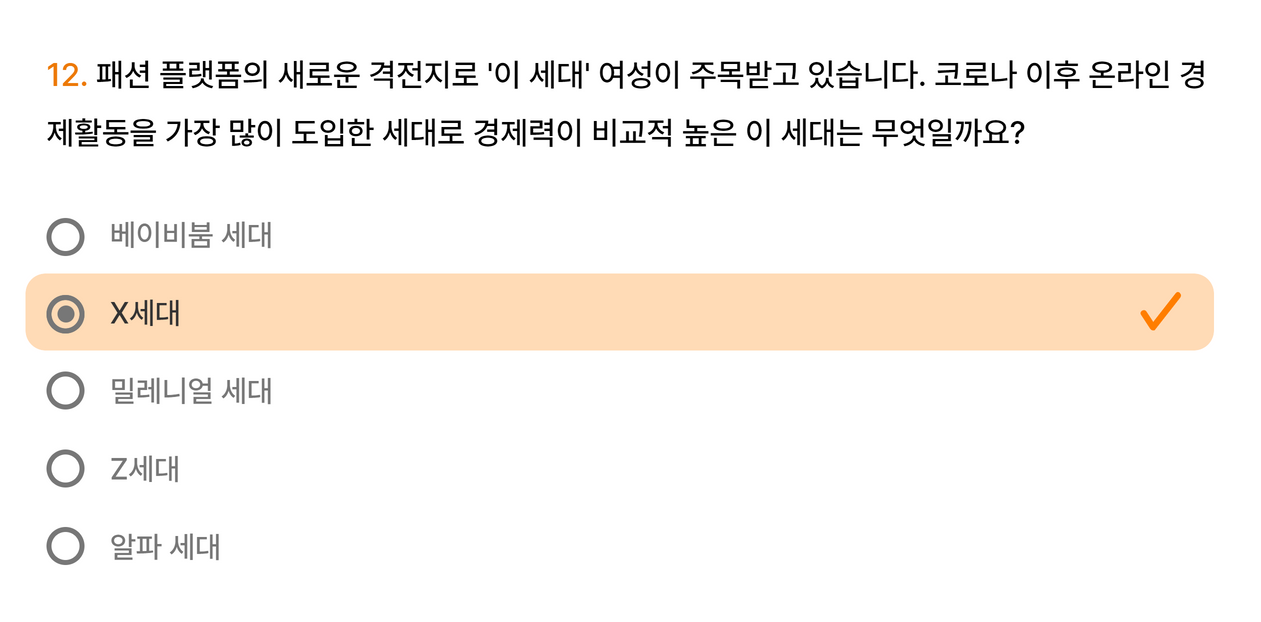 ②X세대는 1969~1978년에 출생한 4050세대를 뜻한다. 코로나19 이후 인터넷 쇼핑에 빠르게 익숙해지고 있는 연령층이며 과학정보통신기술부의 2021년 인터넷 이용실태조사에 따르면, 4050세대는 코로나19 이후 온라인 경제활동을 가장 많이 도입한 세대다.