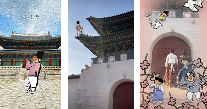2022년에는 풍속도 속 캐릭터를 활용해서 AR 필터를 만들었습니다. 온라인에서 이슈가 되며 사람들에게 익숙한 캐릭터를 다시 사용해서 2022년 궁중문화축전을 알린 거죠.