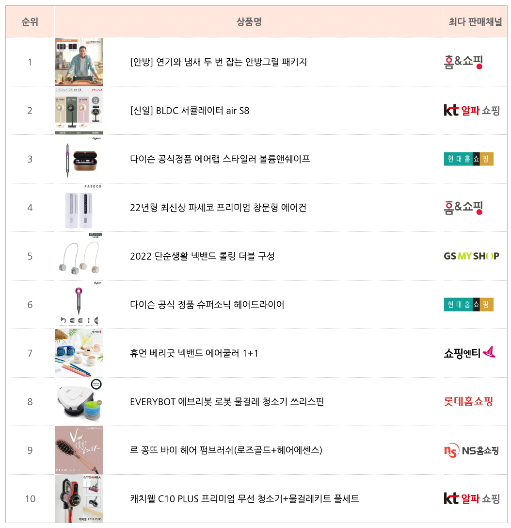 [모바일 홈쇼핑 트렌드_카테고리] 2022년 7월 홈쇼핑에서 1위한 상품을 알아볼까요?
