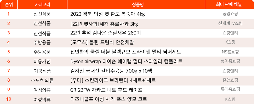 2022년 8월 3주차 홈쇼핑에서는 어떤 제품이 인기가 있었는지 알아볼까요?