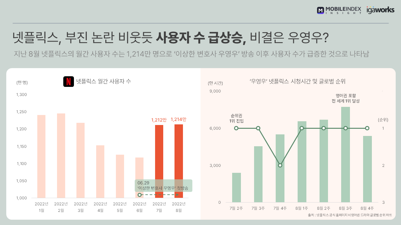 넷플릭스, 부진 논란 비웃듯 사용자 수 급상승, 비결은 우영우?