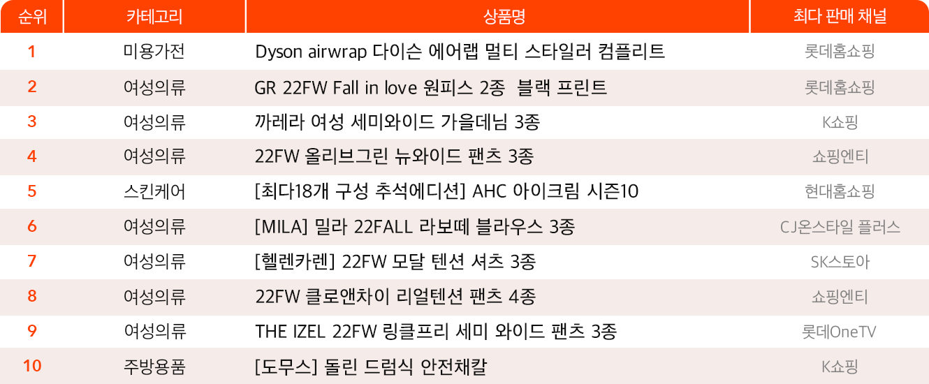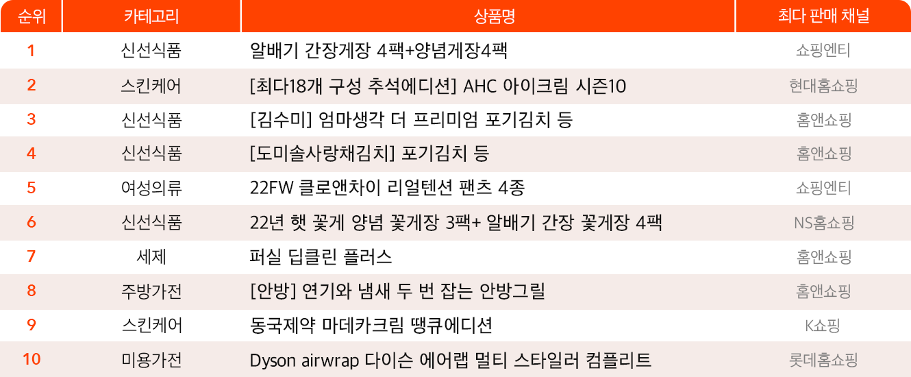 [모바일 홈쇼핑 트렌드] 2022년 9월 홈쇼핑 종합 순위를 확인하세요!