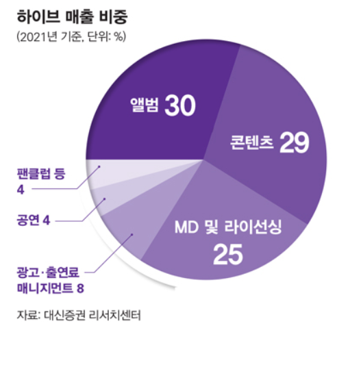 사실 지난 2020년에는 하이브에서 BTS 매출 의존도가 무려 92%나 달했습니다. BTS가 활동을 그만둔다면 하이브도 존재할 수 없는 상황이 되는 정도였습니다.