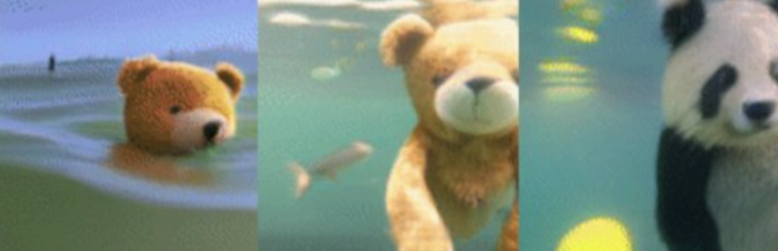페나키는 시나리오를 쓰면 그게 맞게 화면을 구성하고 이를 붙여서 영상화를 해냅니다. 페나키를 선보이면서 구글이 보여주었던 영상은 “곰돌이가 샌프란시스코에서 수영하고 있다”, “곰돌이가 물 속으로 들어가 다양한 물고기들 사이에서 헤엄친다” “팬더도 물속에서 헤엄친다” 라는 시나리오를 어떻게 영상으로 구현하는지 보여 주었습니다.